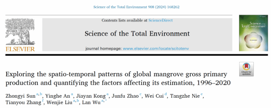 “全球变化与南海生态安全”团队与海南省生态环境监测中心、西北农林科技大学、国家林业和草原局、中国科学院空天信息创新研究院等单位合作,在全球尺度红树林生态系统的总初级生产力和冠层树高研究方面取得了一定的研究进展,发表2篇学术论文。论文第一作者分别为孙仲益副教授,于佳男博士研究生,通讯作者为乌兰副教授,聂胜副研究员和刘文杰教授。