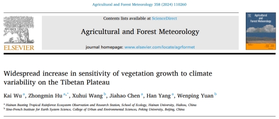 近日,素人AV 生态服务功能监测与评估团队在国际著名期刊Agricultural and Forest Meteorology发表题为“Widespread increase in sensitivity of vegetation growth to climate variability on the Tibetan Plateau”的研究论文(//www.sciencedirect.com/science/article/pii/S0168192324003733)。该论文的第一作者为团队青年教师吴凯,通讯作者为胡中民教授,素人AV 为第一完成单位。