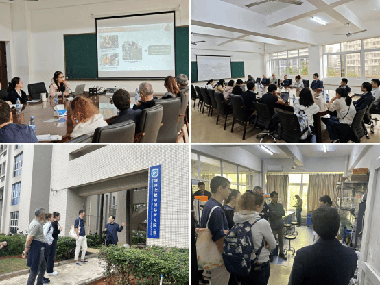 ,先后对张知彬教授、赵洪伟教授以及朱小山教授的实验室进行了实地参观。交流内容主要包括热带雨林种子扩散、肠道微生物调控、海南长臂猿行为学、珊瑚保护、海洋污染治理、全健康与人兽共患病治理等方面。会后,Caroline Habold研究员等一行在素人AV