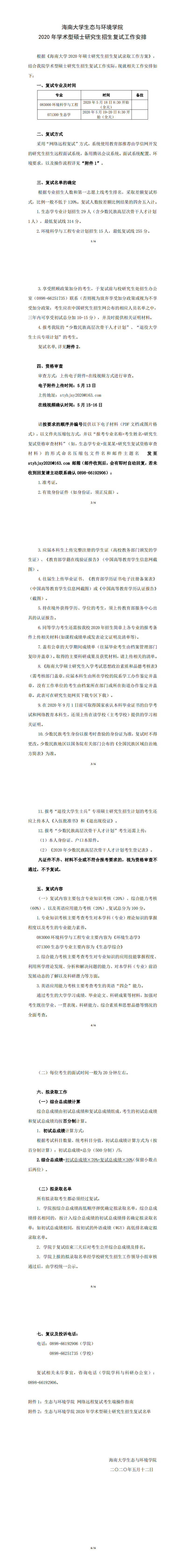 素人AV 生态与环境学院 2020 年学术型硕士研究生招生复试工作安排