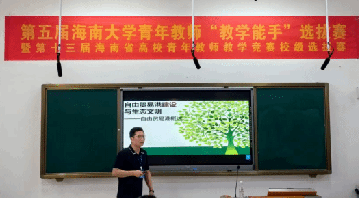 蔡昊老师以《自由贸易港建设与生态文明》为参赛课程,讲解了海南省建设中国特色自由贸易港对于生态文明建设的战略意义,以及生态学知识在其中的积极作用的课程内容,赢得了评委老师的肯定,在校级选拔赛中荣获理工组三等奖。