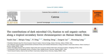 论文以《The contributions of dark microbial CO2 fixation to soil organic carbon along a tropical secondary forest chronosequence on Hainan Island, China》为题,在发表在Catena期刊。孙延菲副教授为第一作者,龙文兴教授为共同通讯作者(//doi.org/10.1016/j.catena.2024.108556)。