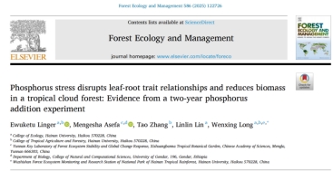 论文以《Phosphorus stress disrupts root–leaf coordination and weakens biomass accumulation in tropical cloud forests》为题,发表在Forest Ecology and Management期刊。博士后Ewuketu Linger Mekonnen为第一作者,龙文兴教授为通讯作者(//doi.org/10.1016/j.foreco.2025.122726)。