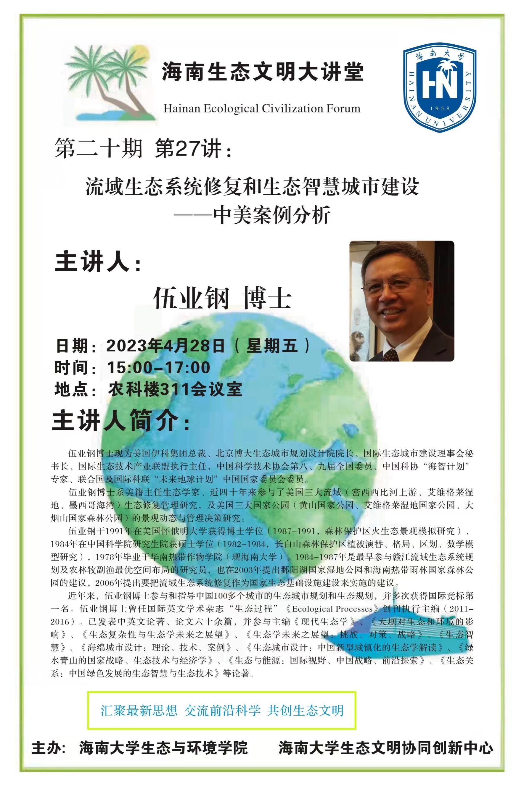 第27讲 伍业钢博士做客海南生态文明大讲堂
