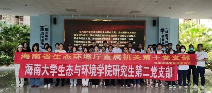 最后,生态与环境学院研究生第二党支部与海南省生态环境厅直属机关第十党支部(海南省辐射环境监测站)对辐射环境领域相关热点问题进行充分交流并合影留念,本次联合党建活动取得圆满成功。